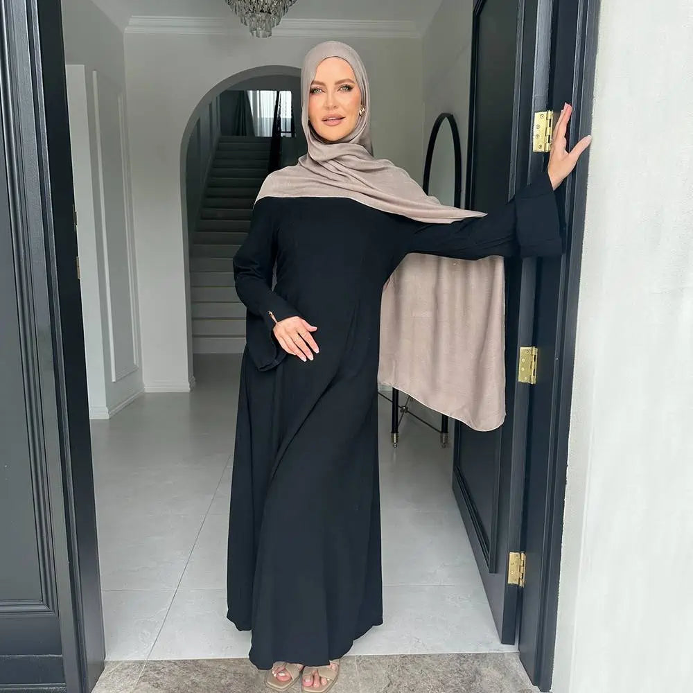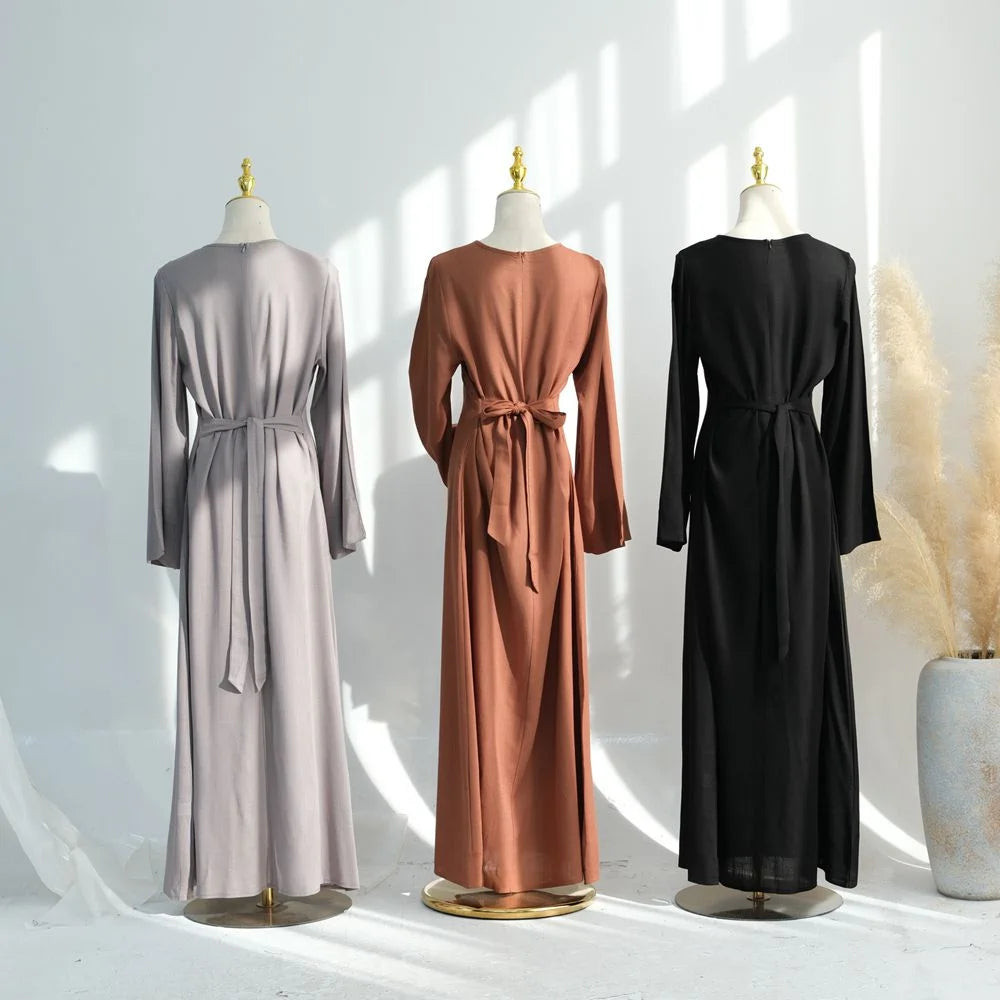 Adjustable Back Strap Linen Cotton Blended Abaya Dress #25948