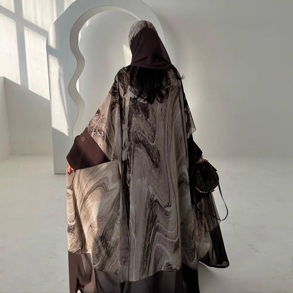 Chiffon Printed Cardigan Open Abaya Dress With Matching Hijab #25222
