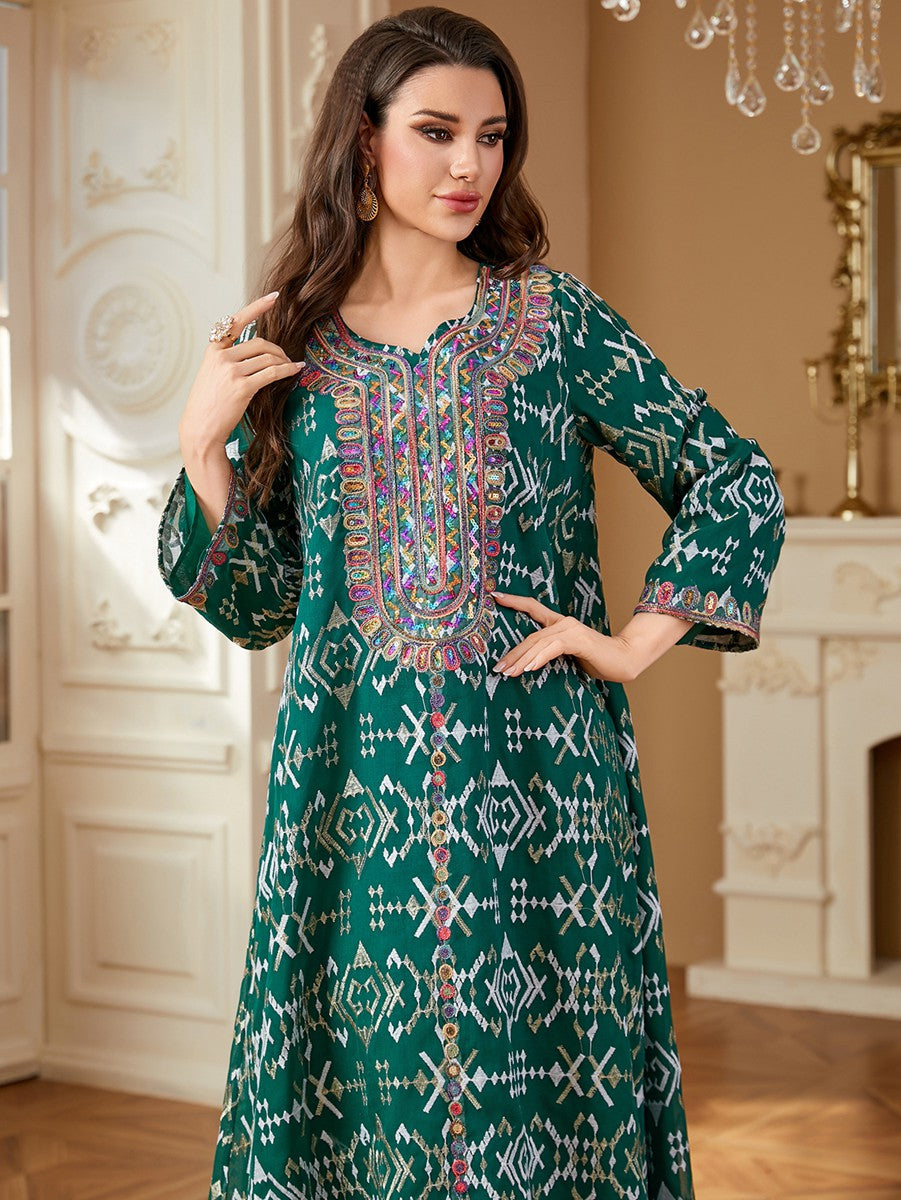 Eid Embroidery Dress Muslim Women Caftan Kaftan Dress #264309