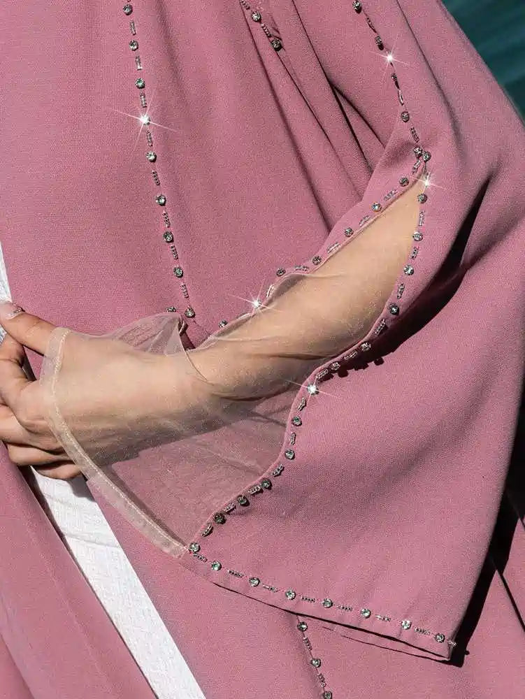 Hand-stitched Rhinestone Beads Cardigan Open Abaya Dress #254078