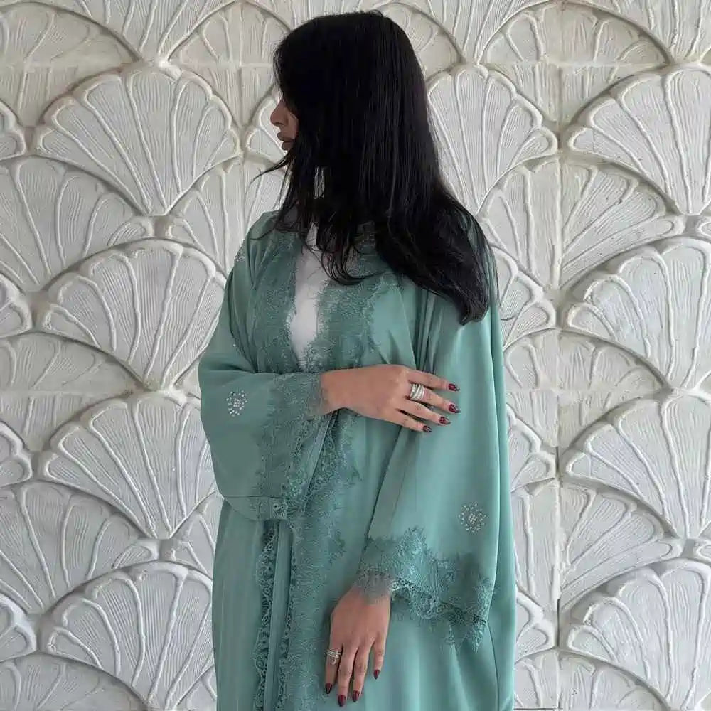 Lace Cardigan Open Abaya Dress #25214