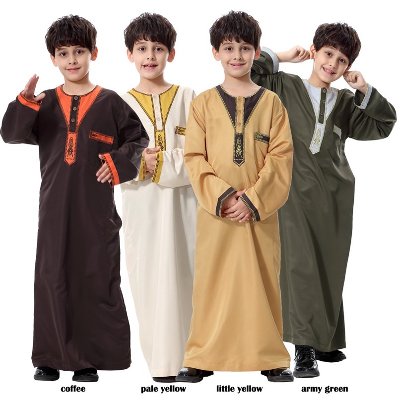 Muslim Boy Arab Embroidery Thobe Thawb