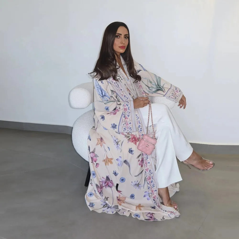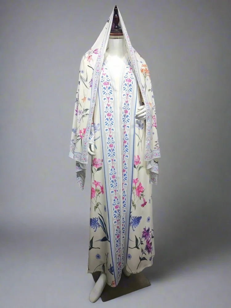 Printed Cardigan Open Abaya Dress With Matching Hijab #25223