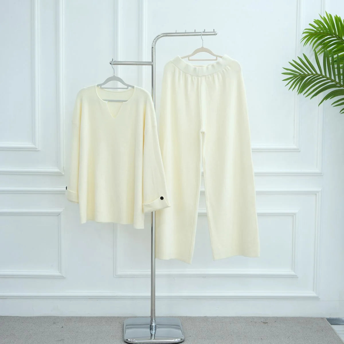 Winter Fall Muslim Women Thick Knitted 2 Pieces Set Tops And Pants Suit Set #25W006